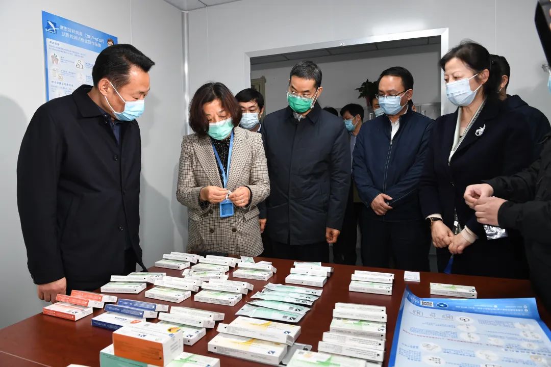 在明珠产业园的安徽深蓝医疗科技股份有限公司,虞爱华现场体验其自主研发的新冠抗原检测试剂盒,当场与有关部门商讨新冠抗原产品在合肥试用问题,并要求市直相关部门派员驻点帮助企业开展国内注册申请工作。