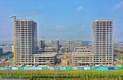集成电路总部基地位于高新区长宁大道与柏堰湾路交口,占地170亩,总建筑面积33.4万㎡,总投资18亿元,主要内容为独栋总部、标准化厂房、公共服务平台、孵化器及综合配套用房等,目前正进行幕墙施工,计划2022年12月竣工交付。
