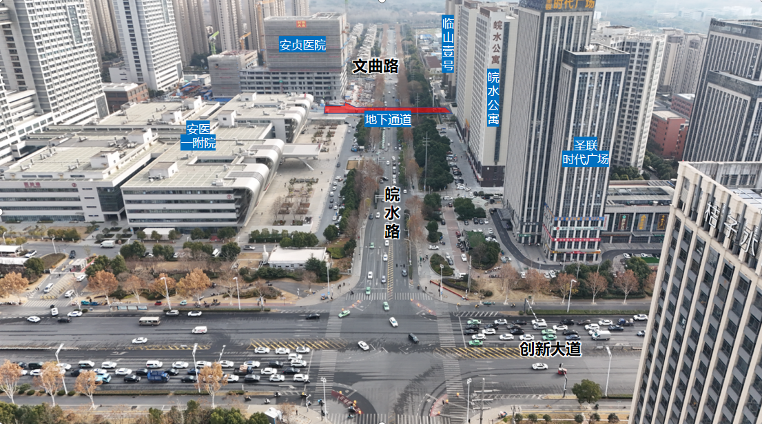2月12日,连接安医附属医院高新院区、安贞医院安徽医院、临山壹号住宅及老年护理院的地下通道工程正式通过竣工验收。