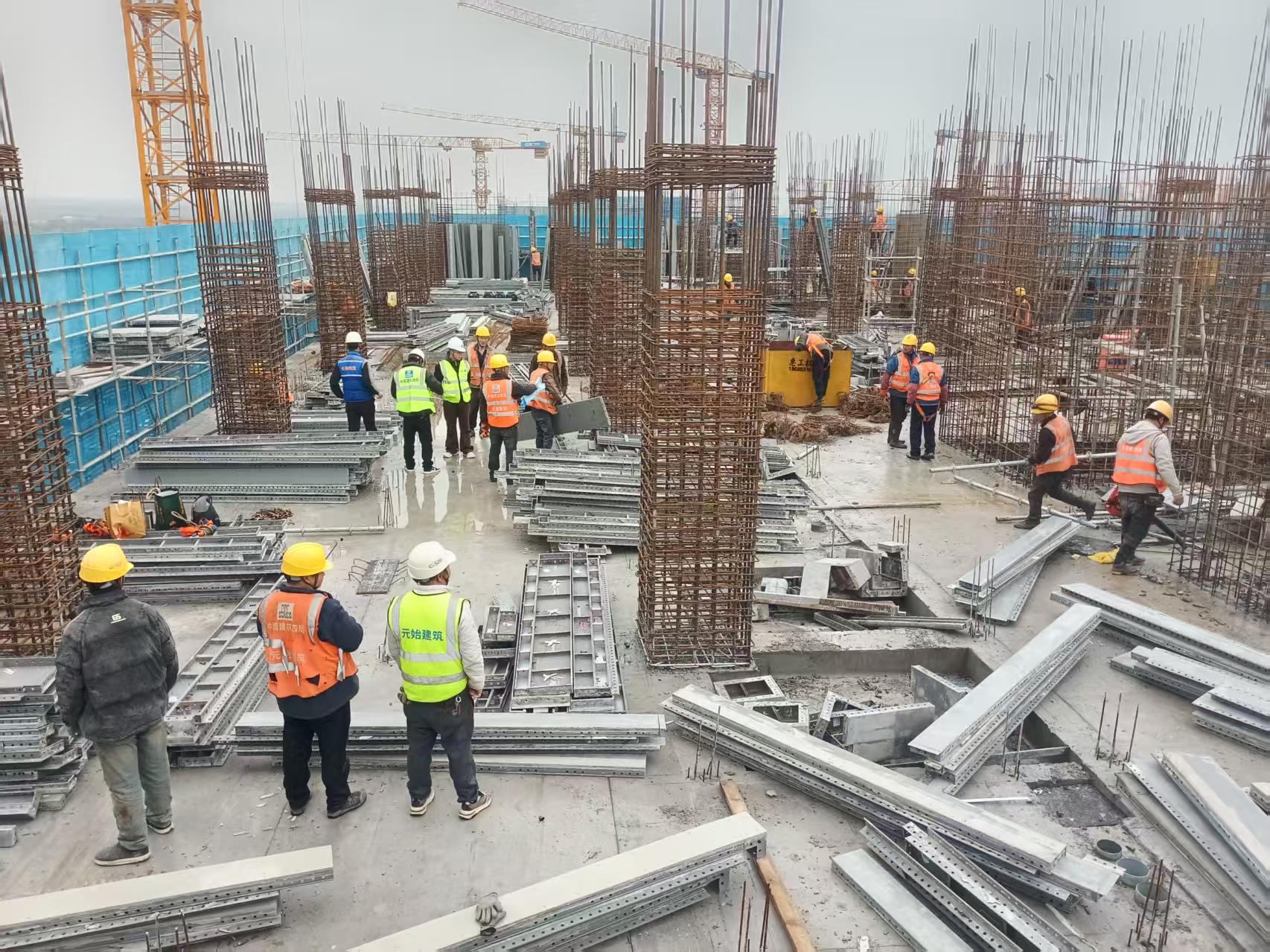 在科创产业园一期西区项目建设现场,工人们正在全力推进主体结构施工,钢结构吊装、混凝土浇筑交叉作业,现场秩序井然。