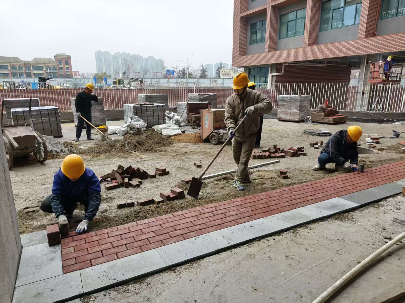 在杨林小学改扩建项目施工现场,教学楼正推进室内装饰装修及安装工程收尾作业,室外同步开展道路、铺装、操场、绿化等配套工程施工。